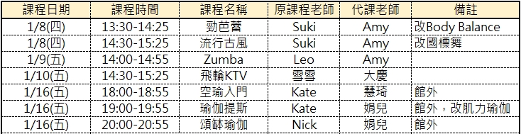 1月代課資訊一覽