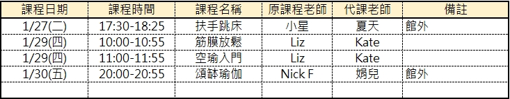 1.一月代課資訊一覽